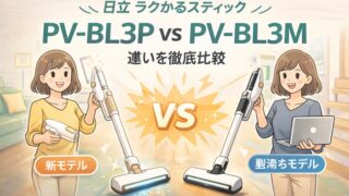日立コードレス掃除機「PV-BL3P」と「PV-BL3M」の違いを徹底比較。吸引力・運転時間・価格差・おすすめな人まで初心者でも分かるよう解説します。型落ちはお得?どっちを選ぶべきか迷っている人必見。