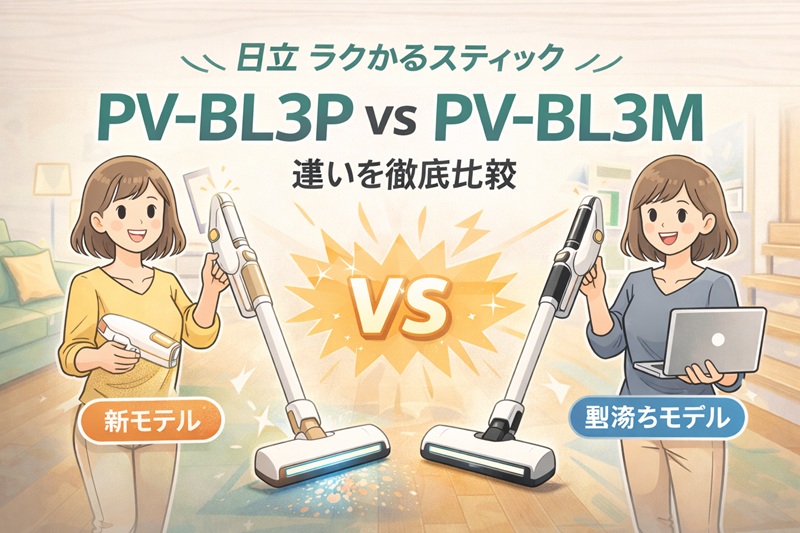 ここまでPV-BL3PとPV-BL3Mの違いを比較してきましたが、結論としてこの2モデルは掃除性能そのものに大きな差はありません。どちらも日立ラクかるスティックシリーズらしく、軽量・扱いやすさ・日常掃除の快適さに優れたコードレス掃除機です。